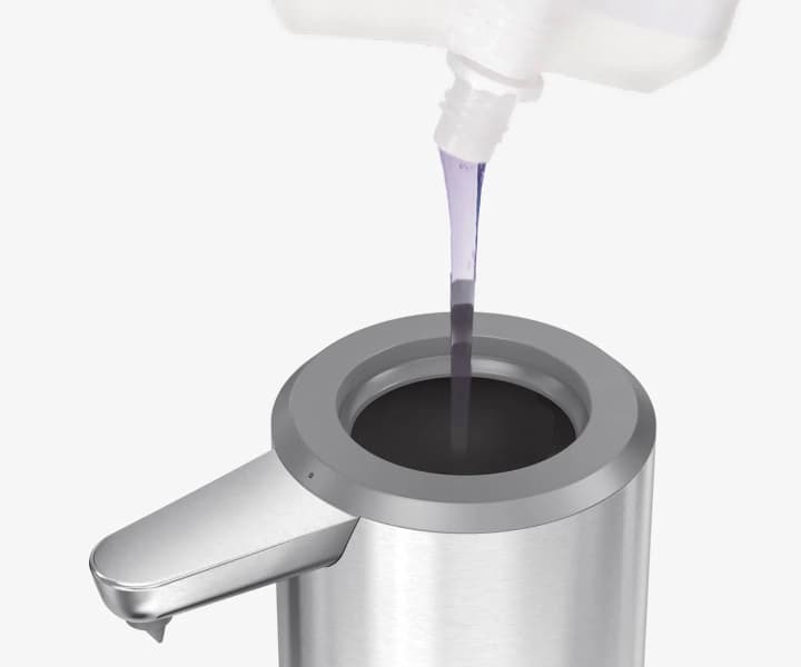 Our sensor pump will deliver a different amount of soap based on how far away you place your hand. Close for a little — far away for a lot.