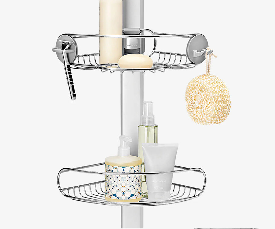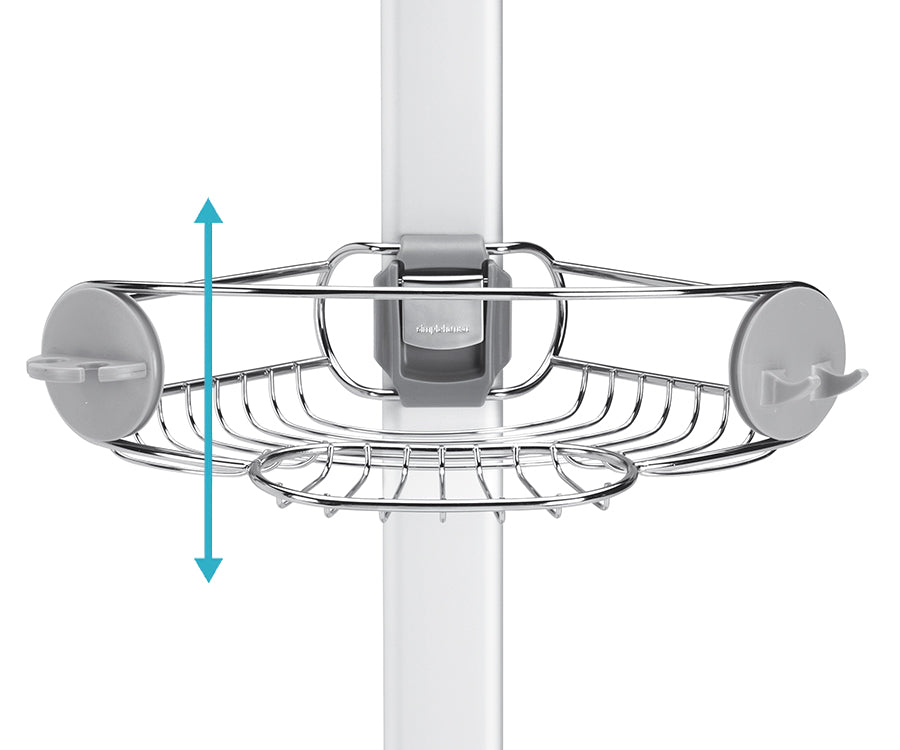 Des paniers à cadre d'acier ajustables permettent de personnaliser votre rangement de douche. Glissez-les vers le haut ou vers le bas afin de pouvoir y ranger des flacons plus grands.