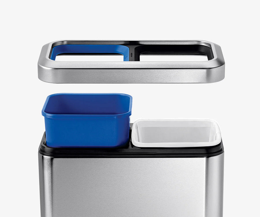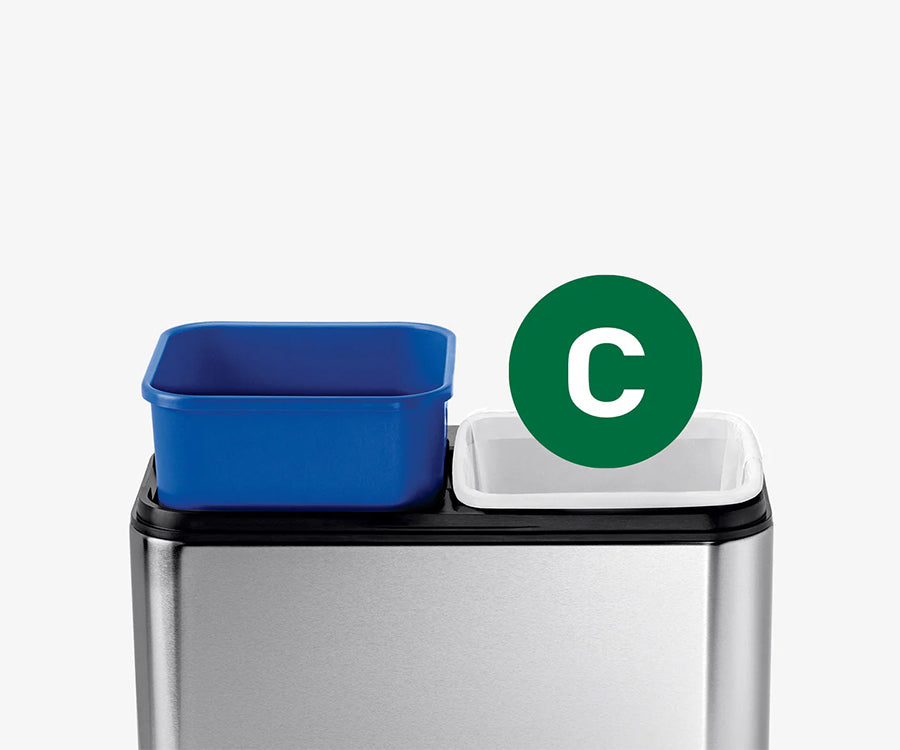 Notre option à double compartiment permet de trier proprement vos déchets domestiques et vos déchets recyclables dans cette poubelle à double bac. La poubelle allie respect de l'environnement et optimisation de l'espace.