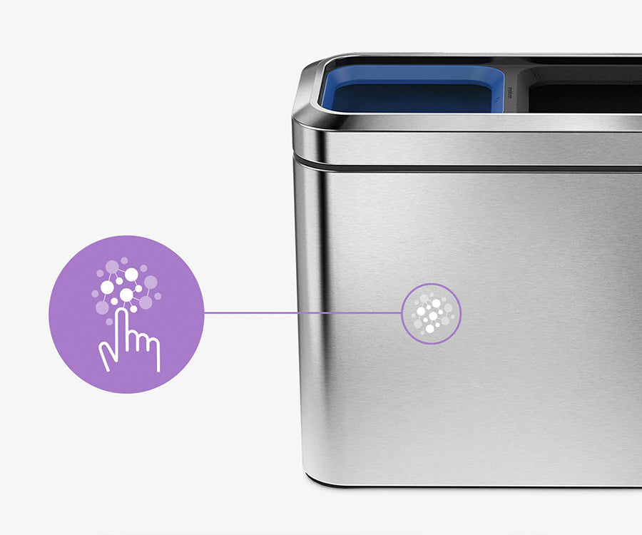 Notre revêtement invisible aux ions d'argent résiste aux traces de doigts et à la propagation des bactéries sans ternir l'éclat et le lustre naturels de l'acier (modèle brossé uniquement).