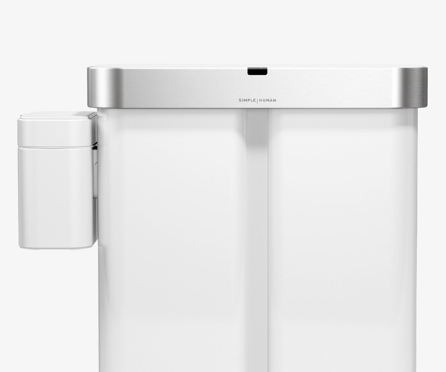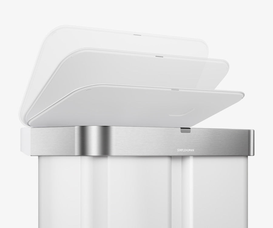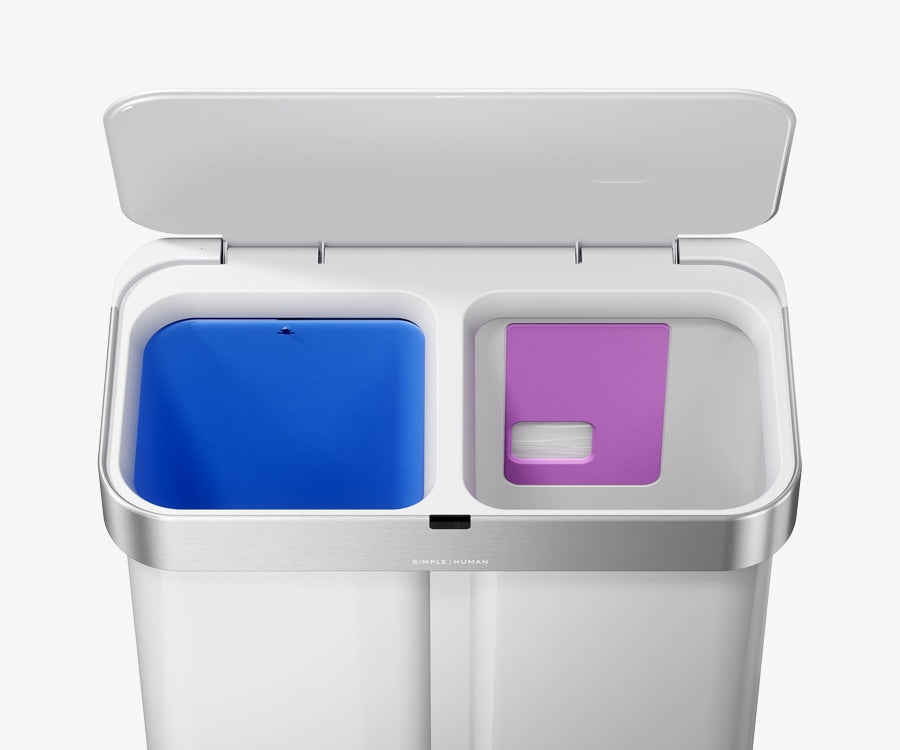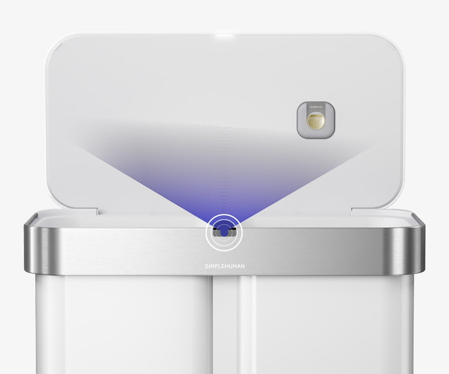 The Simplehuman Sensor Recycler combines voice and motion sensor technology with whisper-quiet operation to make everyday waste disposal effortless and clean. Its smart sensor system opens the lid instantly with a wave of your hand or “open can” voice command.  Inside, dual compartments are designed to make sorting trash and recycling easy and efficient — all in one streamlined addition to elevate any kitchen.