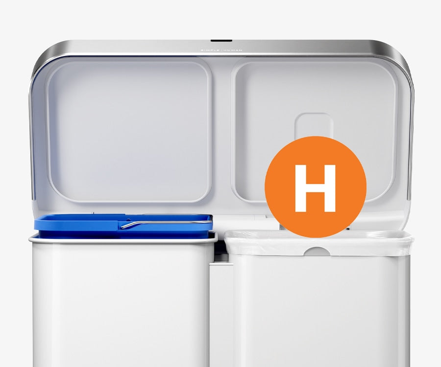 Our liner rim system makes trash faster and neater. Simply lift the lid for easy access, then close it to keep the liner tidy and out of sight.